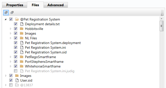 When you create a new deployment package, any files in the current solution folder (typically this is a sub-folder which contains your sid, ini and all your solution files) will be automatically included in this package. In addition, the user.sid file and C:\ProgramData\Newlook 11.1\Images folder is also selected, as many solutions reference images in this folder. As a general rule, it is recommended that any files you wish to deploy should be inside the solution folder, however it is possible to select any file under the data path (C:\ProgramData\Newlook 11.1) for deployment. You may also wish to add any applicable display schemes (.nlg) and keyboard schemes (.nlk) to your file selection.